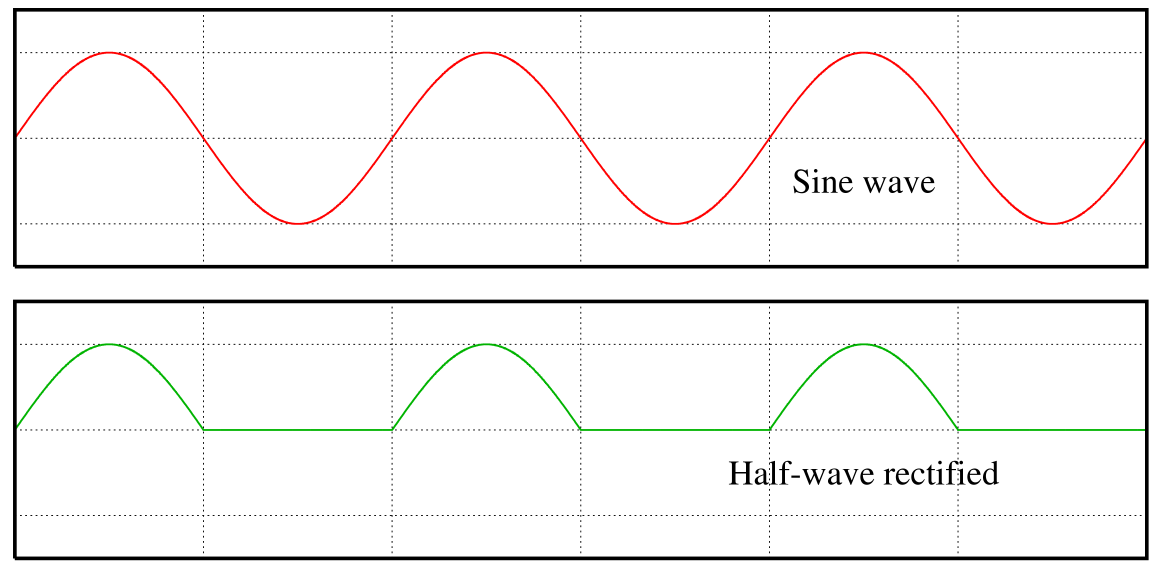 1. Positive Half-Cycle: When the input AC voltage is positive (with respect to the reference terminal), the diode becomes forward biased. In this state, the diode conducts current and acts as a closed switch with a small voltage drop (typically 0.7V for silicon diodes). The load resistor receives the positive half of the input waveform minus this small diode voltage drop.